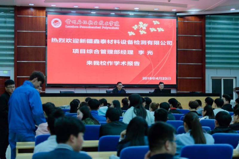 2018年4月23日上午,yl6809永利集团邀请新疆鑫泰设备检测有限公司项目综合管理部经理李光,在东区报告厅为16、17级“理化检测与质检技术专业”学生和教师作主题为“无损检测与现代工业应用”的学术报告。
