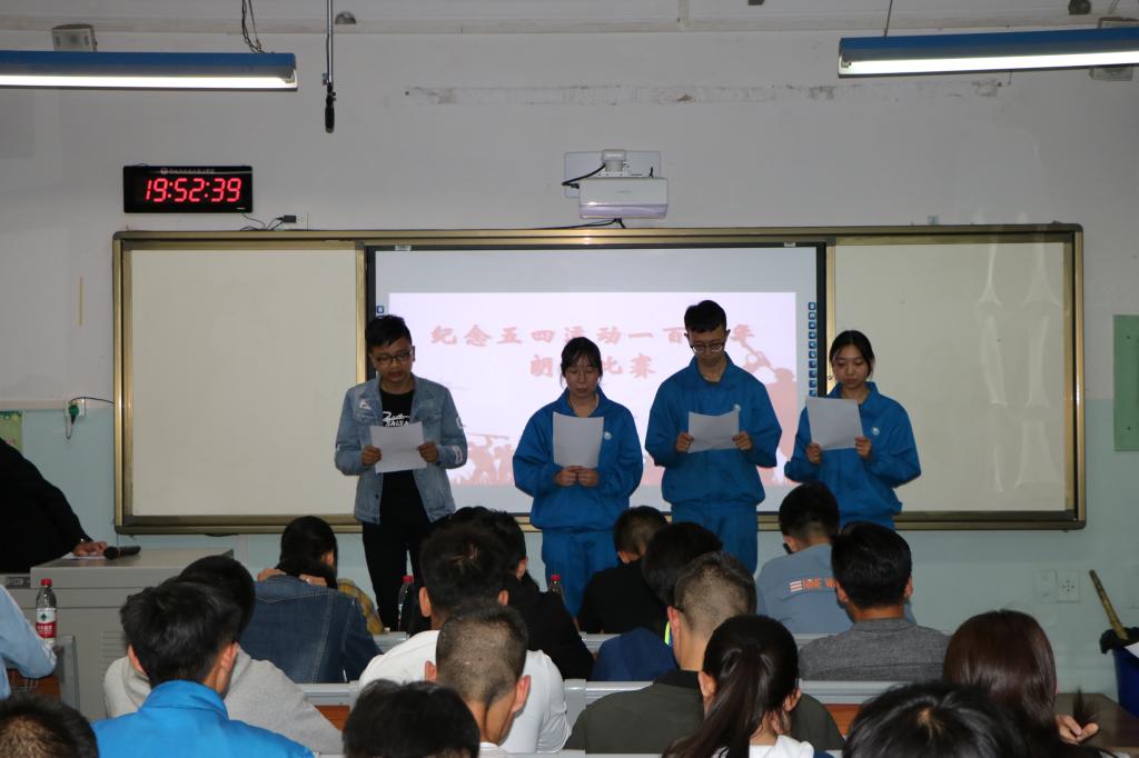 为纪念五四运动100周年,进一步弘扬爱国、进步、民主、科学的五四精神。422日晚,yl6809永利集团在机电楼308室开展纪念五四运动一百周年朗诵比赛,50余名同学参加了此次比赛。