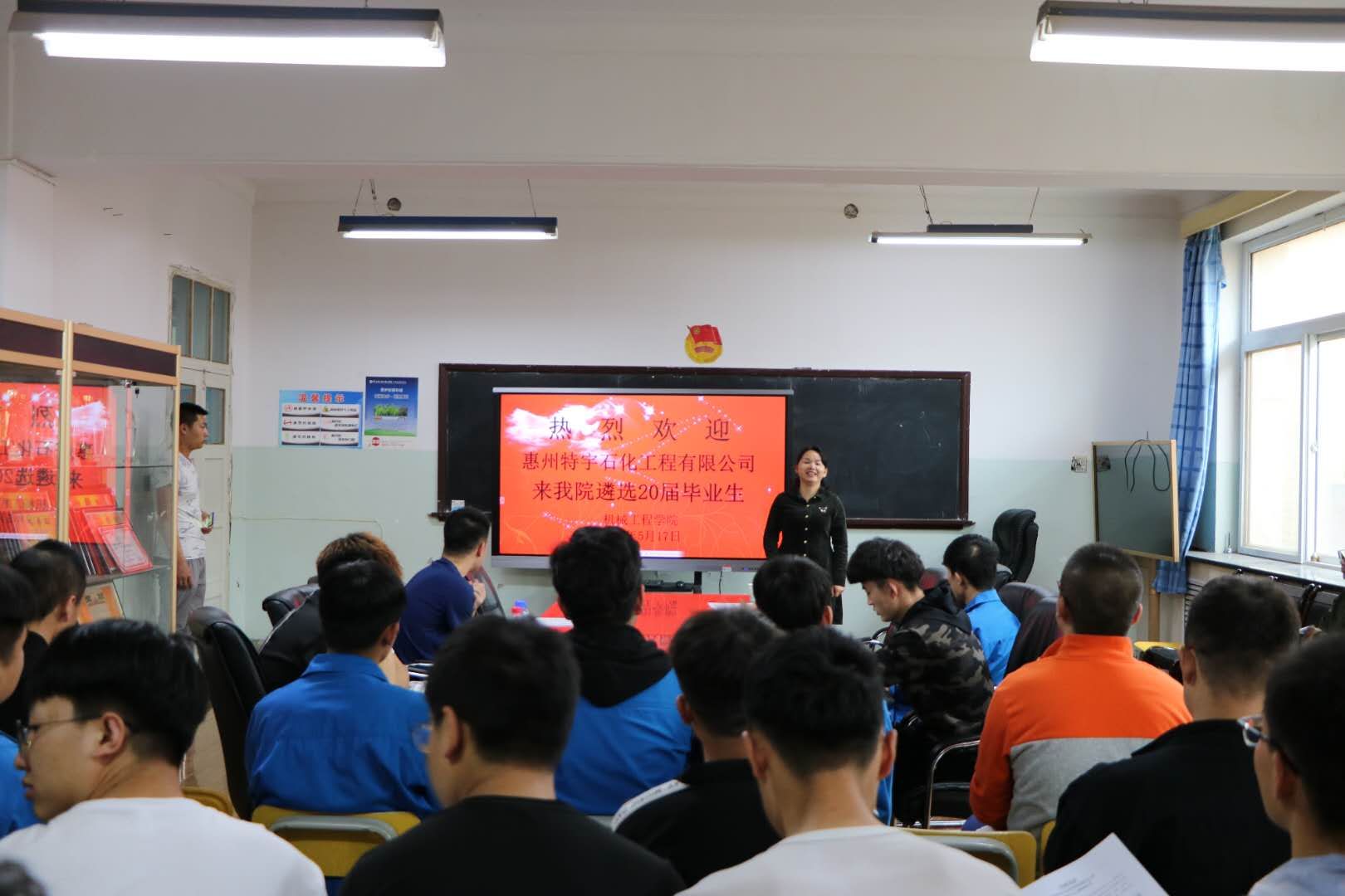 为满足企业单位用人需求,促进大学毕业生充分就业,加深行业认识。5月17日下午,惠州特宇石化工程有限公司来yl6809永利集团遴选2020届毕业生,yl6809永利集团就业部组织我院应届毕业学生在机电楼二楼参加了此次宣讲会。