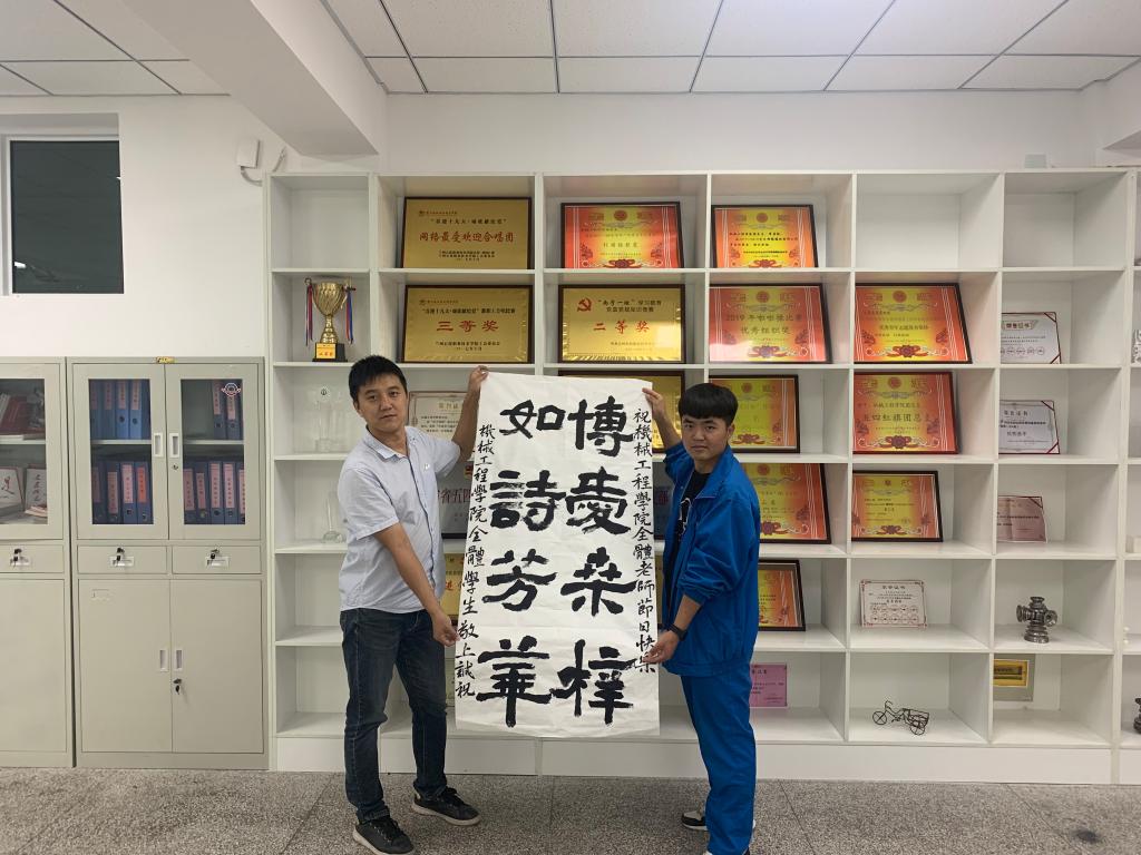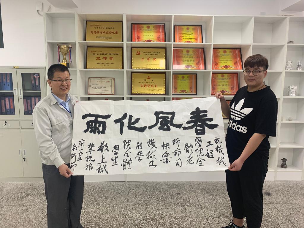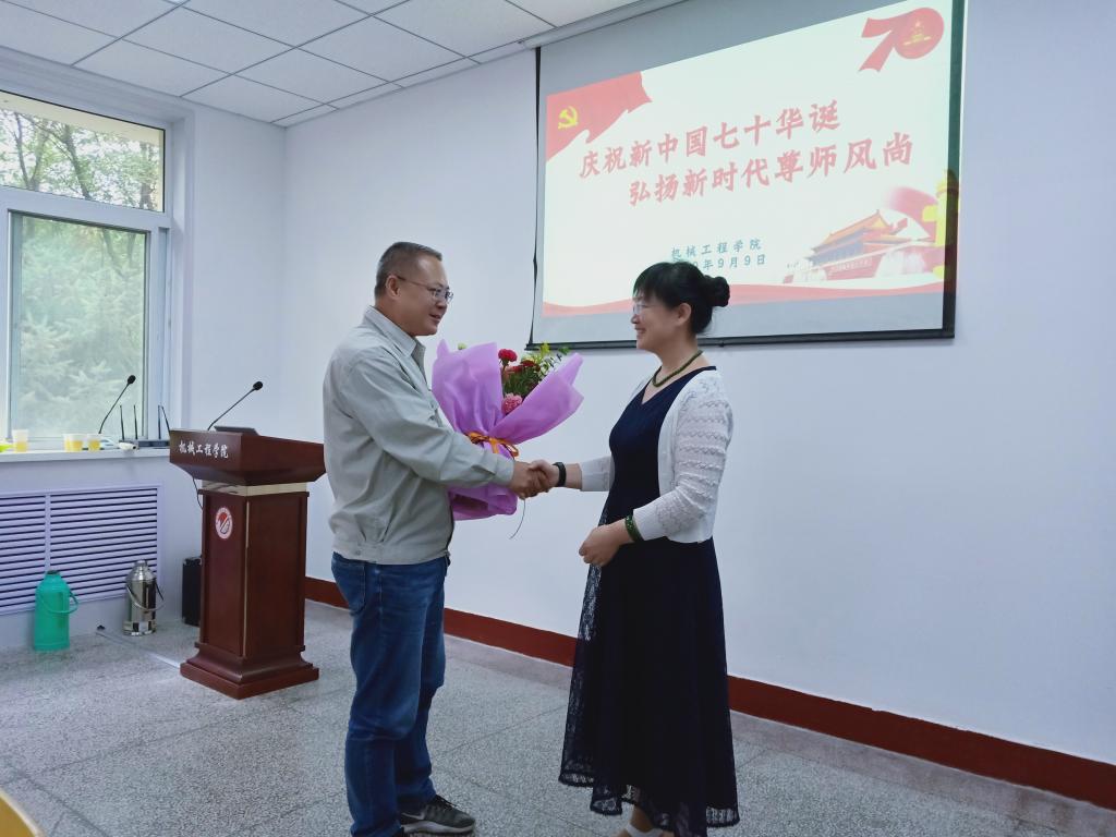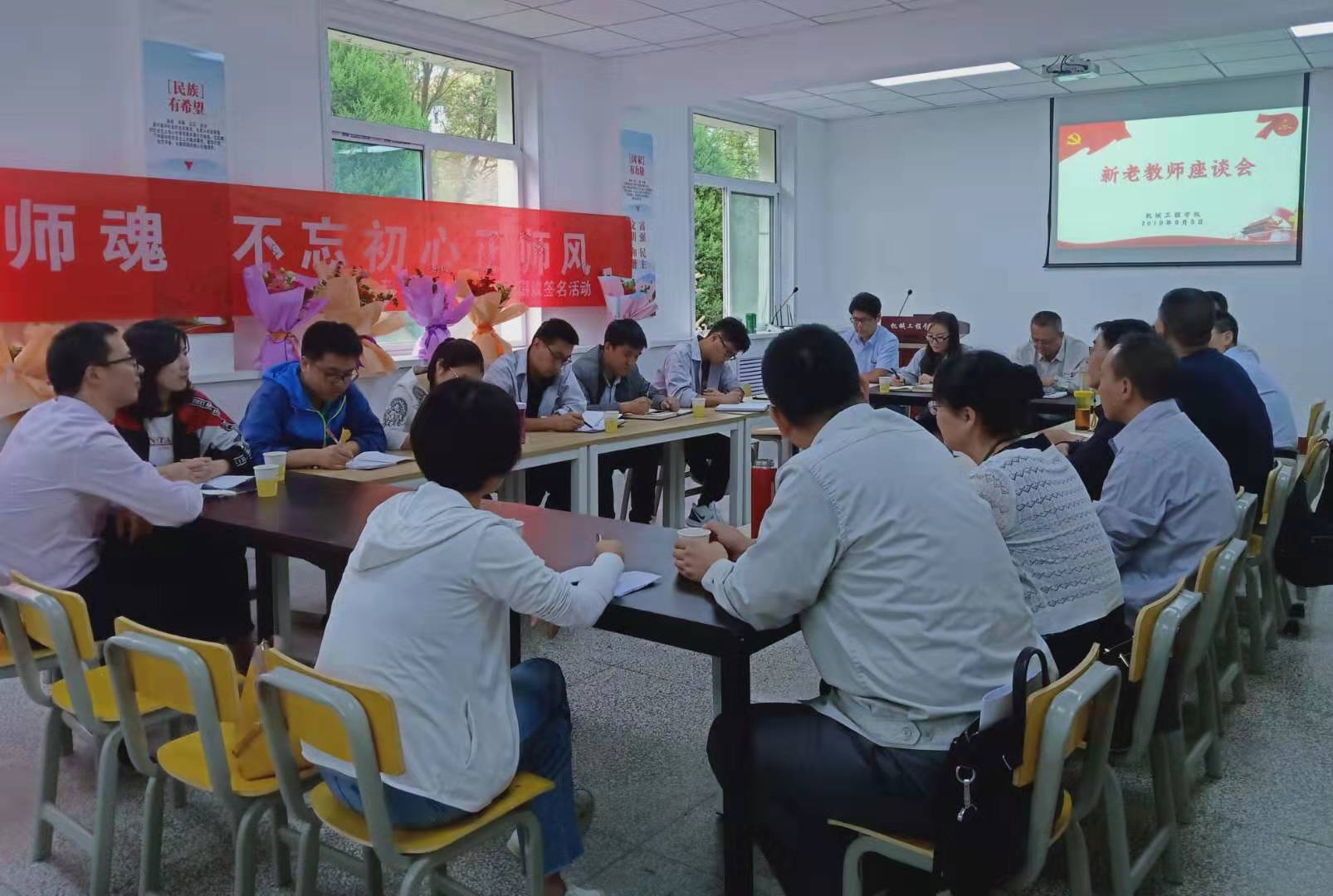 9月9日下午,我院在机电楼召开新老师座谈会,学院领导及部分新老教师代表参加了座谈会。与会教师围绕“庆祝新中国七十华诞,弘扬新时代师德风尚”,并结合各自的教学经历畅谈心得体会。院长赵忠宪代表学院向各位老师致以节日的问候,并以献花的形式表达对老教师们的感谢和祝福;他从国家对于职业教育重视的角度谈起,鼓励各位老师在工作中不忘初心,立德树人,做到以德立身、以德立学、以德施教。会上,倾明教授从自身工作经历谈起,以一名老教师的身份谈了自身的从教经历和经验,希望各位年轻教师首先要结合信息化教学尽快提升专业知识的储备,确保专业过硬;其次,在教学过程中能够因材施教,进行差异化教学;最后,在学生管理中要有仁爱之心,促进学生的健康成长;刘立平教授从个人的教学经历谈起,希望青年教师在教学过程中要有爱心,有责任心,更要有耐心;其次,希望青年教师能够正确处理教学与科研之间的关系,做到教科研齐头并进。与会教师们纷纷表示,将继承老一辈教师的优良传统,树立良好的师德师风,让我院的师德风范影响学生、进而带领学生取得进步。最后,学生代表向与会教师赠送书法作品,以表达对师恩的感谢。