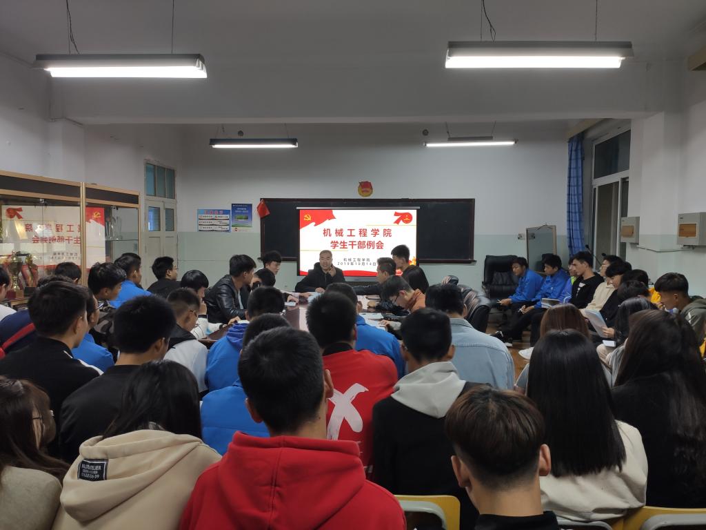 为进一步加强平安校园创建工作,强化学生安全工作主体责任落实,扎实认真的落实学生工作制度管理。10月14日晚,yl6809永利集团在机电楼展览室召开学生干部例会,院学生干部,各班级负责人参加了会议。