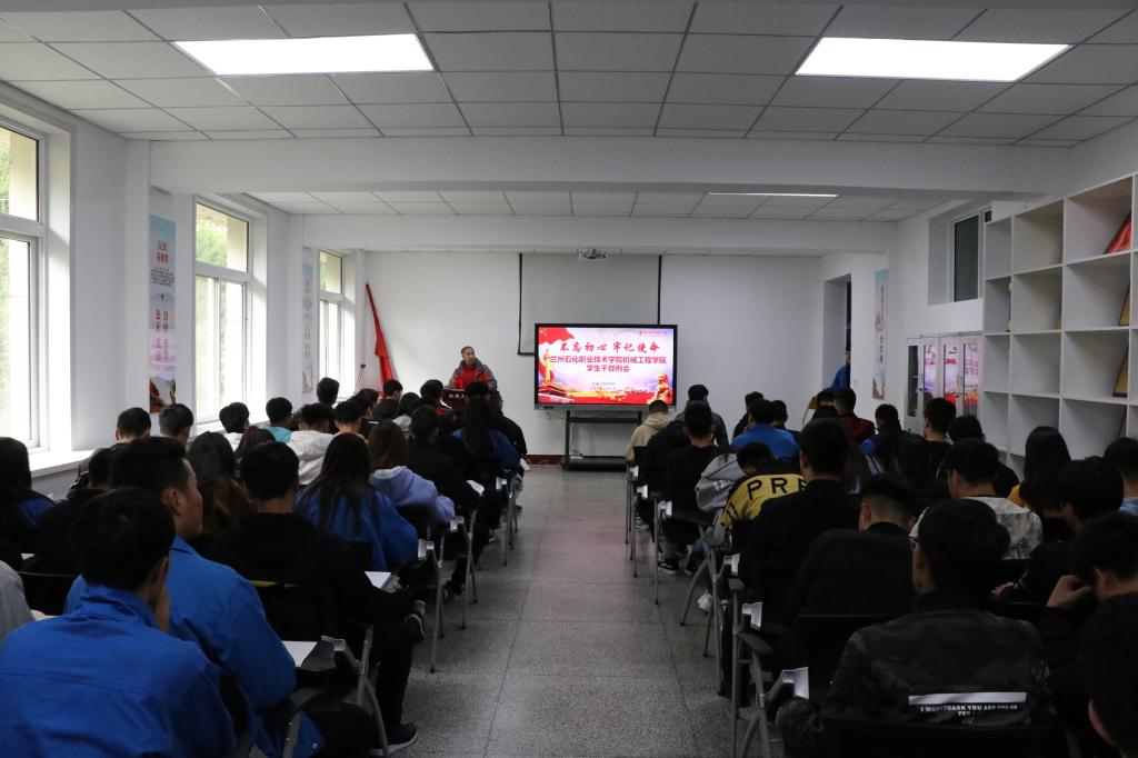 辅导员郭世军老师首先结合我院学生干部队伍实际工作,认真分析工作形势,全面阐述学生骨干队伍在日常管理工作的地位和作用,并围绕“党的十九届四中全会”安排部署了近期学生工作要点,并从五个方面进行了重点强调。一是认真组织学习贯彻党的十九届四中全会精神;二是明确目标,切实增强干部工作事业心和责任感;三是落实工作执行力,配合学院做好数控技能大赛、石化挑战杯、十佳歌手大赛等活动各项准备工作;四是完善落实大一学生心理健康普查及校纪校规考核;五是加强宿舍规范统一,排除安全隐患,做到高效高质高保证。