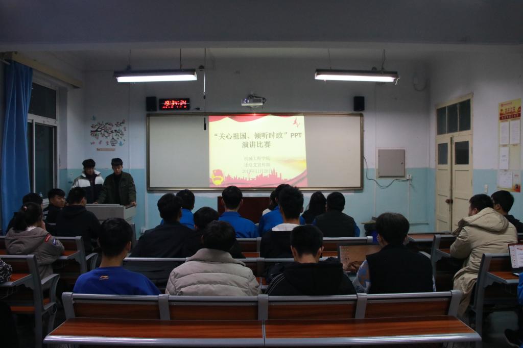 为学习好、领会好、贯彻好十九届四中全会重要讲话精神,把会议精神切切实实转化为推动高质量发展的强大动力,真正做到用先进思想武装头脑、指导实践、推动工作。11月28日晚,yl6809永利集团在机电楼502、504教室组织开展“关心祖国、倾听时政”PPT演讲比赛活动,活动由学院宣传部主持召开,19级近百名学生积极参与。