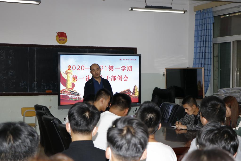 为做好开学后各项学生工作,加强学生干部工作主体责任,提高学生干部自身素质。8月24日晚,yl6809永利集团在机电楼展览室召开本学期第一次学生干部例会;会议由辅导员张亚峰主持召开,参加会议的有18、19级全体干部、干事;会议主要围绕两项内容展开:一是开学后各部门主要工作安排,二是干部培训。