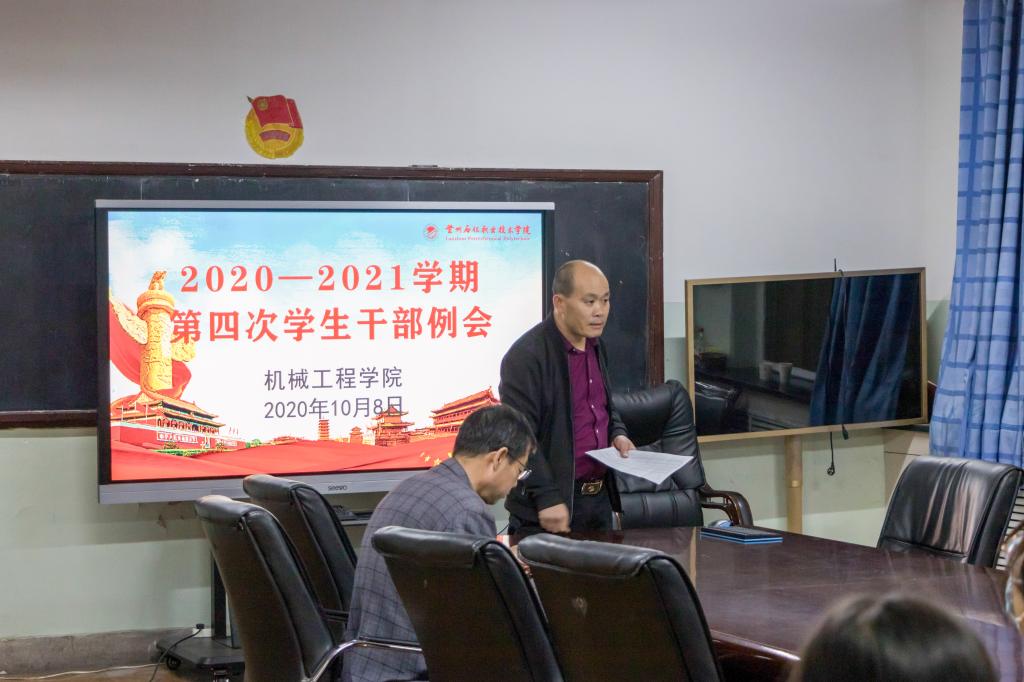 为顺利开展2020年迎新工作,做好新生注册报道准备,yl6809永利集团10月8日晚在机电楼展览室召开第四次学生干部例会暨迎新志愿者培训大会,会议由辅导员张亚峰主持。学院全体学生干部参加此次会议。