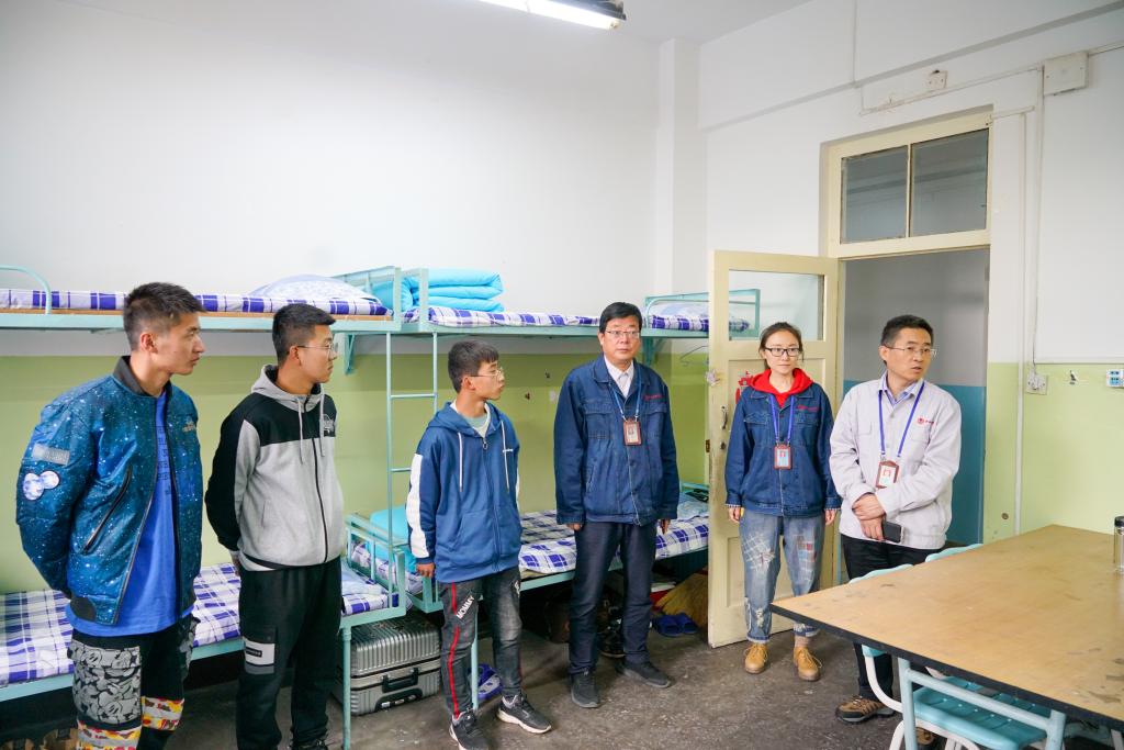 10月11日下午,校领导、院领导、辅导员一行前往公寓看望我院2020级新生,每到一个新生宿舍,学校领导便与同学们开始亲切地攀谈,询问同学们对新学校、新环境、新宿舍的感受,与新生拉家常,并叮嘱同学们要尽快转变身份,适应大学生活。