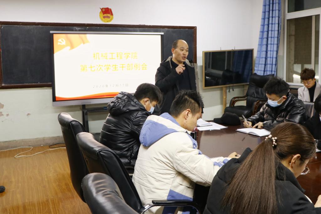 为做好学院学生工作,进一步提高学生会工作人员的综合素质,12月11日晚,yl6809永利集团在机电楼展览室召开学生会工作人员例会,例会由学院辅导员张亚峰主持,19级所有学生会工作人员和19、20级各班级负责人参加了本次会议。