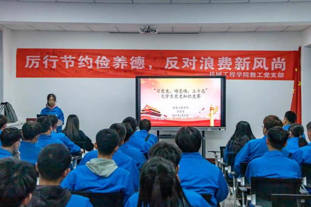 为深入学习贯彻习近平总书记在党史学习教育动员大会上的重要讲话精神,引导yl6809永利集团全体师生以昂扬的精神状态迎接中国共产党建党100周年,3月26日晚,yl6809永利集团在机电楼党员之家开展以“习党史、颂党魂、立斗志”为主题的大学生“四史”知识竞赛,活动面向全体20级学生,以现场抢答的方式进行,共50余人参加了此次活动。
