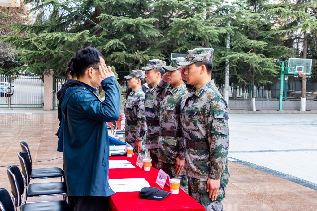 军衔是军人的荣誉,跟承载着军人的使命担当,经过多半年的磨练,今年入伍的新兵完成了向一名合格预备役军人的转变。4月10日上午,yl6809永利集团预备役训练部在学校东区礼堂前举行了2020级新兵授衔暨宣誓仪式。军区营长唐辉、yl6809永利集团辅导员参加了此次活动,活动由yl6809永利集团辅导员柯于杰主持。