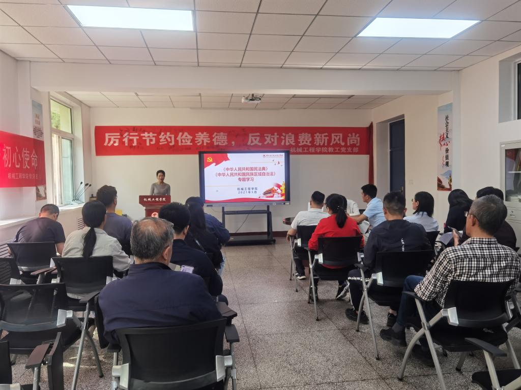 2021年是“十四五”规划的开局之年,是向第二个百年奋斗目标进军的开启之年,也是中国共产党建党一百周年。今年5月是全省第18个民族团结进步宣传月,为全面贯彻落实习近平总书记关于民族工作特别是铸牢中华民族共同体意识的重要论述精神,增强“四个意识”、坚定“四个自信”、做到“两个维护”,铸牢中华民族共同体意识,根据中共甘肃省委宣传都、中共甘肃省委统战部、甘肃省民族事务委员会、中共甘肃省委教育工作委员会和甘肃省教育厅工作部署要求,结合庆祝中国共产党成立100周年和学校党发【2021】33号《关于印发<兰州石化职业技术学院第18个民族团结进步宣传月活动实施方案>的通知》要求,yl6809永利集团于5月13日下午,在学院党员之家开展了《中华人民共和国民法典》和《中华人民共和国民族区域自治法》等法律法规专题学习。