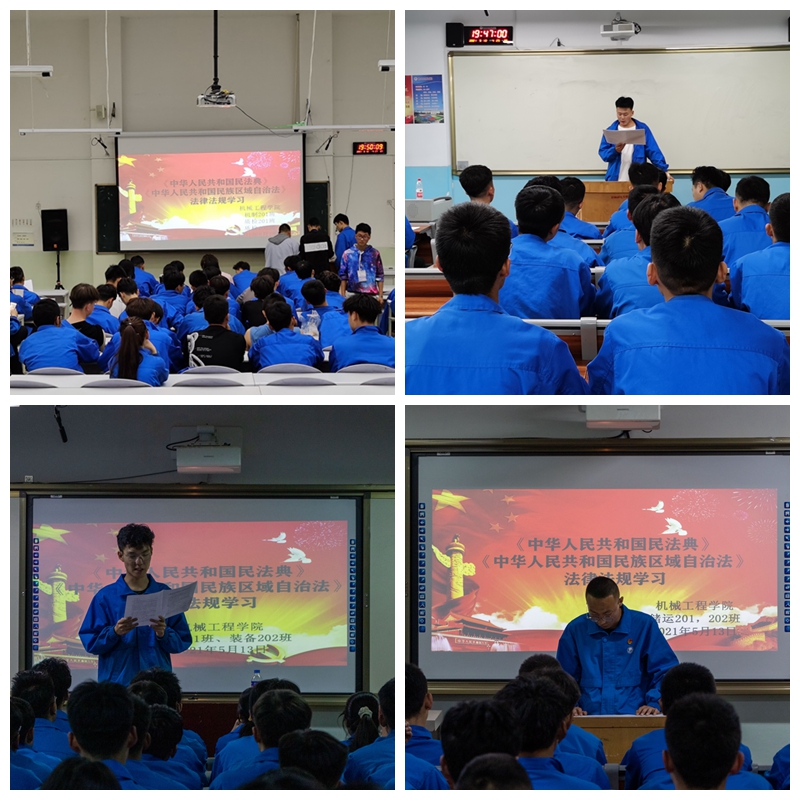 活动开始前学院下发了符合现阶段教育目的《中华人民共和国民法典》、《中华人民共和国民族区域自治法》部分内容,并在老师、学生群体中进行宣传学习。活动现场氛围严肃,学院全体师生都仔细聆听、认真学习,对部分不懂的内容提出问题,负责人耐心、详细的解答,参与活动的人员表现都反映出了大家对法律法规的正视和严谨的学习态度。