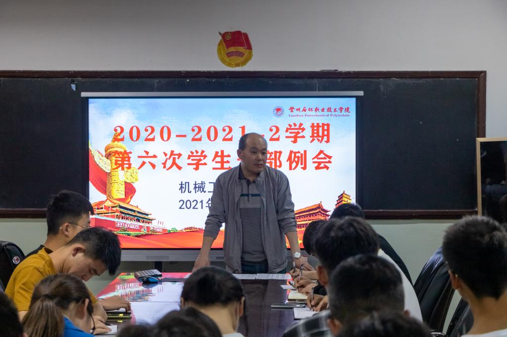 为认真落实学校教育教学制度规定,更好地开展学院学生工作,加强学院学生管理。5月26日晚,yl6809永利集团在机电楼展览室开展学生会工作人员例会,本次会议由学院辅导员张亚峰主持。全体学生会工作人员及19、20级各班级负责人参加了本次会议。