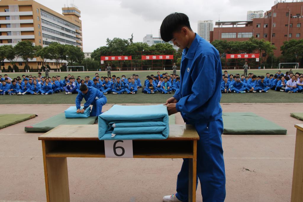 大赛伊始,yl6809永利集团党支部副书记王小芬为本次大赛致开幕词并做动员讲话。本次比赛共有来自20级各班共70名同学报名参加,比赛要求参赛人员在规定的5分钟时间内叠好军被,要求独立完成。评委根据叠被的时间和质量打分。随着主持人一声“开始”的号令,参赛选手们纷纷进入“叠军被”模式。参赛选手们认真仔细,平铺、横折、画线、竖折、修边等一个个细致入微的动作,做得有条不紊,得心应手。经过了他们的仔细修整,整洁美观的军被便出现在了评委和同学们的眼前,他们熟练地动作也给在场老师、同学留下了深刻的印象。