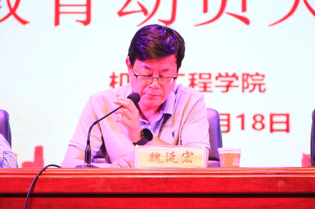 随后,学院院长魏延宏就2019级顶岗实习开展了教育动员大会。在会议中,他就“明确顶岗实习的目的,充分认识顶岗实习的重要性”和“了解顶岗实习要求,确保圆满完成实习任务”两个方面向同学们阐述了顶岗实习在大学学习以及未来就业发展的重要性,鼓励同学们不断学习,大胆实践,不断提高自己的知识技能。辅导员运宏善对于学校的顶岗实习管理规定、如何走向顶岗实习问题给同学们做了详细解读,并且强调了同学们的安全问题,提醒同学们在实习过程中谨防上当受骗,最后祝愿同学们顺利完成顶岗实习,找到自己满意的工作。