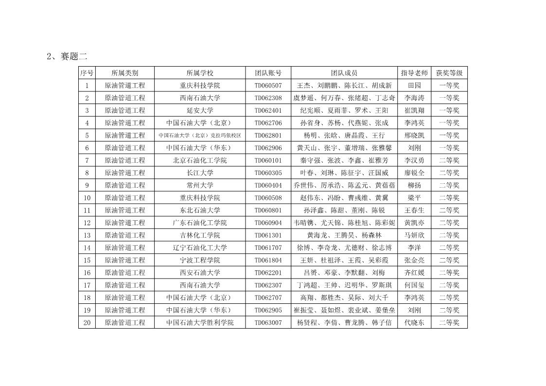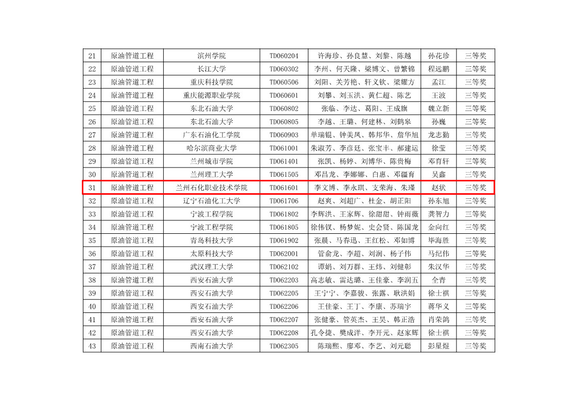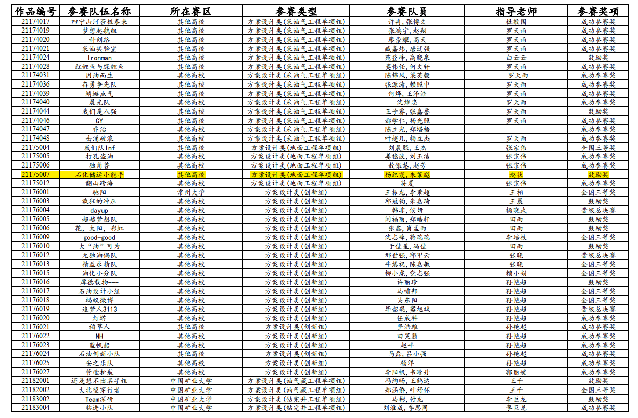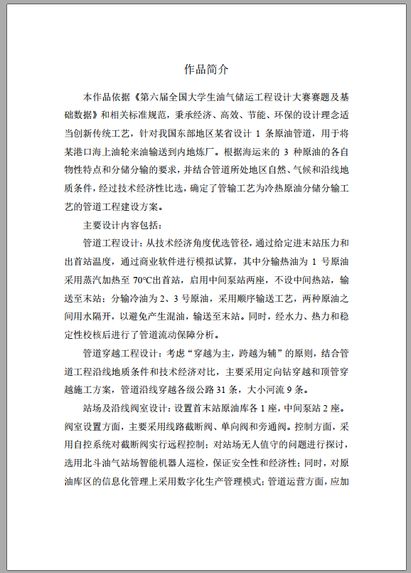 (第六届全国油气储运工程设计大赛获奖公示)
