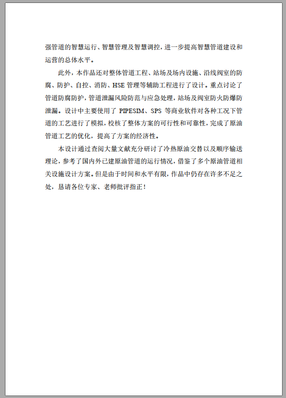 赛题发布后,指导教师第一时间进行了赛题解读,最终选择了赛题二,依托上学期选拔的专业拔尖学生培养团队制定了详细的参赛计划,主要从原油管道工程设计基础知识和相关设计规范、稳态和瞬态工程设计软件学习、原油管道公用工程及HSE管理、智慧管道建设等几个方面全程参与指导。经过学生参赛团队和指导教师连续2个月不懈努力,克服重重困难,经评审最终获得了大赛三等奖。