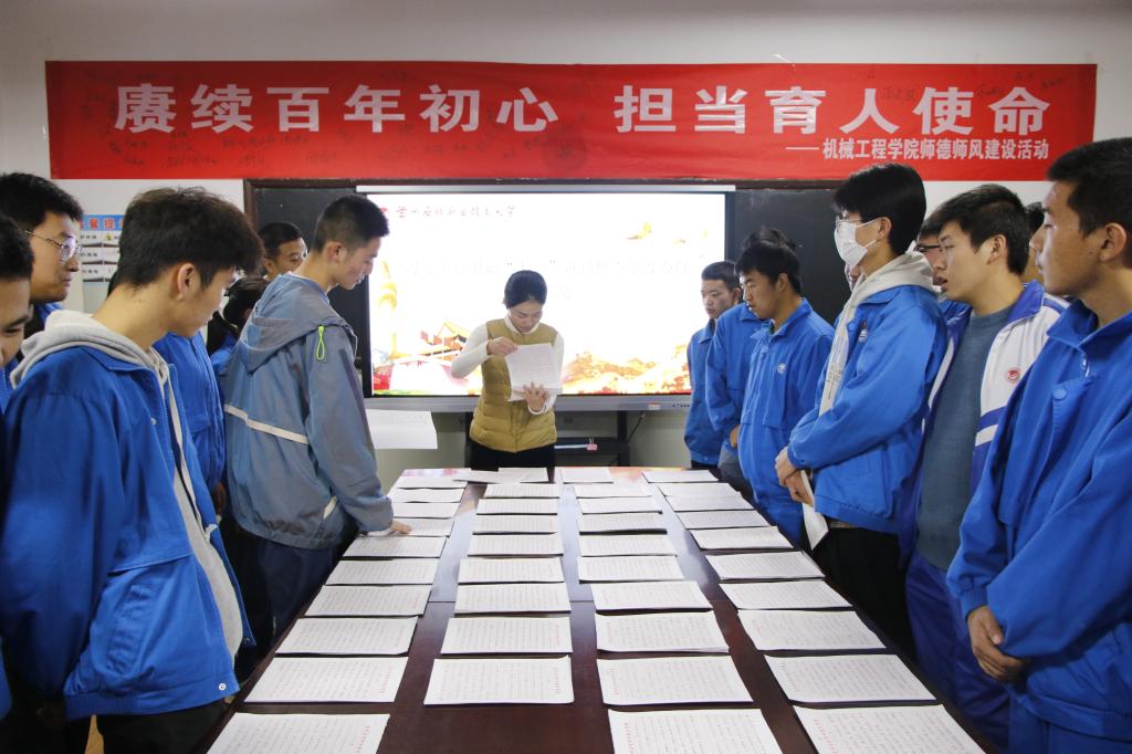 为深入贯彻学习习近平总书记“七一”重要讲话精神,10月14日晚,yl6809永利集团于机电楼二楼展览室组织开展了学习习近平总书记“七一”重要讲话精神学习心得展评活动。学院领导、辅导员、20级各班团支书以及部分入党积极分子共同参与了此次活动。