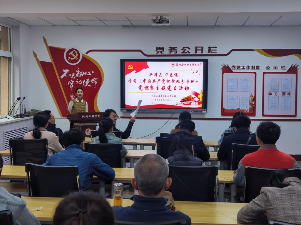为持续推进党纪国法学习教育,10月14日,yl6809永利集团教工党支部开展《中国共产党纪律处分条例》(以下简称《条例》)专题学习,学习由教工党支部书记张胜男主持,支部全体党员参加了学习。