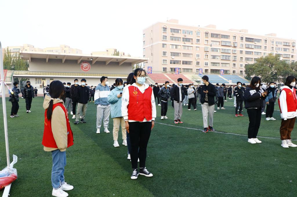 面对第四次全员核酸检测的命令,我院仍然积极响应号召,由预备役组成的志愿者分队迅速集结,第一时间赶往东区操场检测点,助力学校高效完成核酸检测工作。预备役成员们勇于担当,组织领导有序,责任分工明确。检测开始前,他们顶着初冬清晨的寒冷,动作规范、容貌严整地按照时间安排提前组织好学生队伍,引导学生在图书馆门前有序集合;在操场门口,预备役志愿者确认学生队伍的顺序,并提醒学生戴好口罩,间隔一米,排队进入操场。随后,志愿们分组带领各班队伍分组有序地在几个核酸检测点排队等候。同学们自觉按照间隔一米的距离排队,提前准备好健康码,不随意走动,分批次进入采集点采样。样本采集结束后,志愿者组织学生迅速离开检测点,极力避免人群聚集,检测现场井然有序。