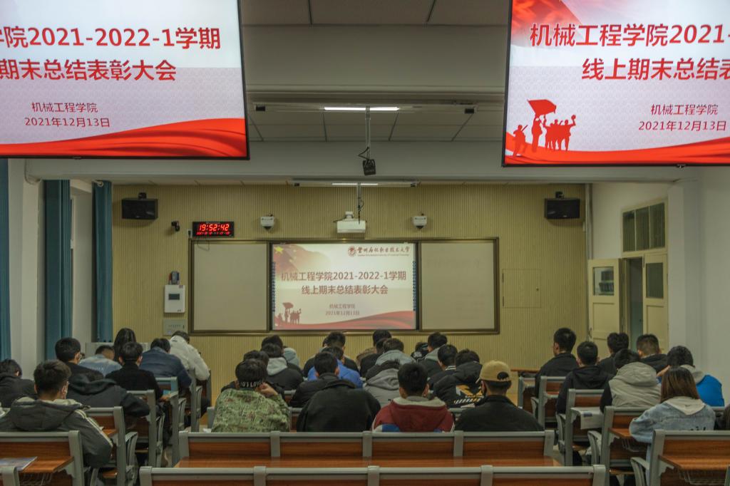 12月13日晚,yl6809永利集团召开2021-2022-1学期期末总结表彰暨考试动员大会,学院领导、辅导员、班主任、20级、21级全体学生共同参加了此次会议。因疫情防控要求,本次大会采取钉钉观看直播的线上方式进行,20级同学在宿舍观看,21级同学在各班晚自习室统一观看。会议由魏延宏主持。