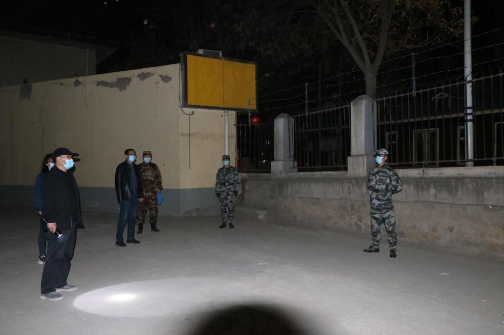 来到一线重点区域,学院领导巡检现场巡逻值班工作,并对预备役同学按要求落实值班安排和防控工作表示了充分的肯定。随即对晚上默默坚守岗位的预备役同学不辞辛苦、服务师生的奉献精神表示称赞。最后,学院领导强调:预备役同学们要高度重视疫情防控工作,强化值守,做到人不离岗、岗不离人,巡逻务必细致,谨防出现晚上有部分学生“钻空子”,出现取外卖、取快递、翻墙出校等违纪现象。