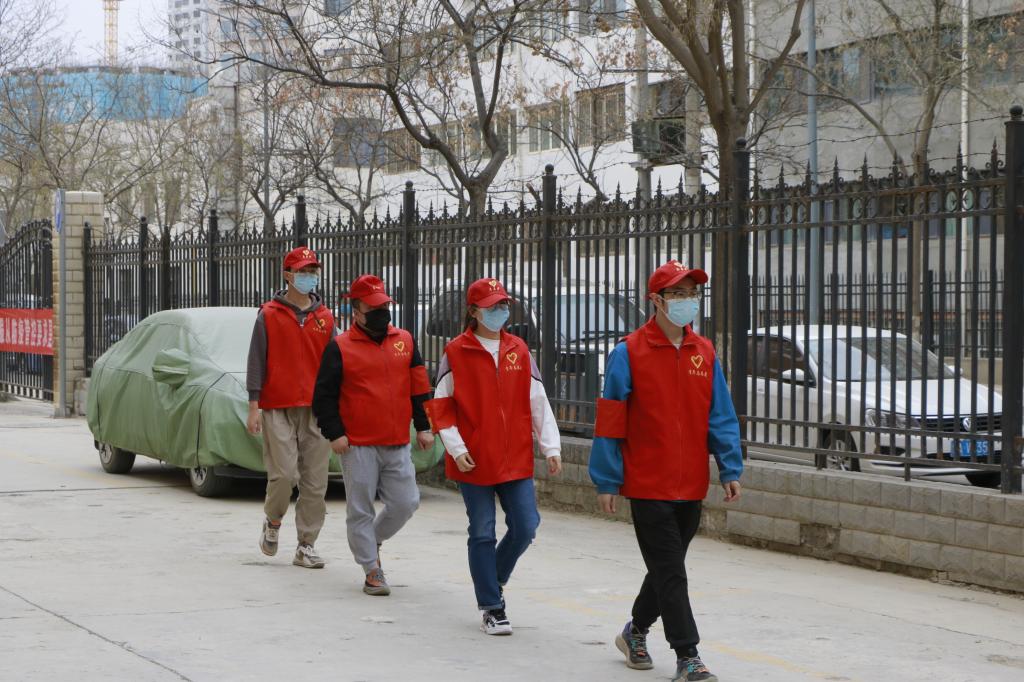 早上八点,在中泰楼后的区域,如约出现了这样四人一组的巡逻队伍,他们身穿志愿者红色马甲,佩戴袖章,深入中泰公寓及第二工业中心后门等重点巡查区域内开展治安巡逻,做好违纪现象排查。巡逻过程中,一旦发现可疑情况、突发状况,巡逻小队负责人将及时上报,以确保突发事件可以及时发现、及时处理。严防影响校园安全的取外卖、取快递等违纪现象发生,维护学校师生的人身安全。晚上十点,志愿者巡逻结束后,预备役成员紧接接力棒,继续坚守巡逻岗位,志愿者和预备役成员们日夜值守,用实际行动筑牢了校园疫情防控的防线。
