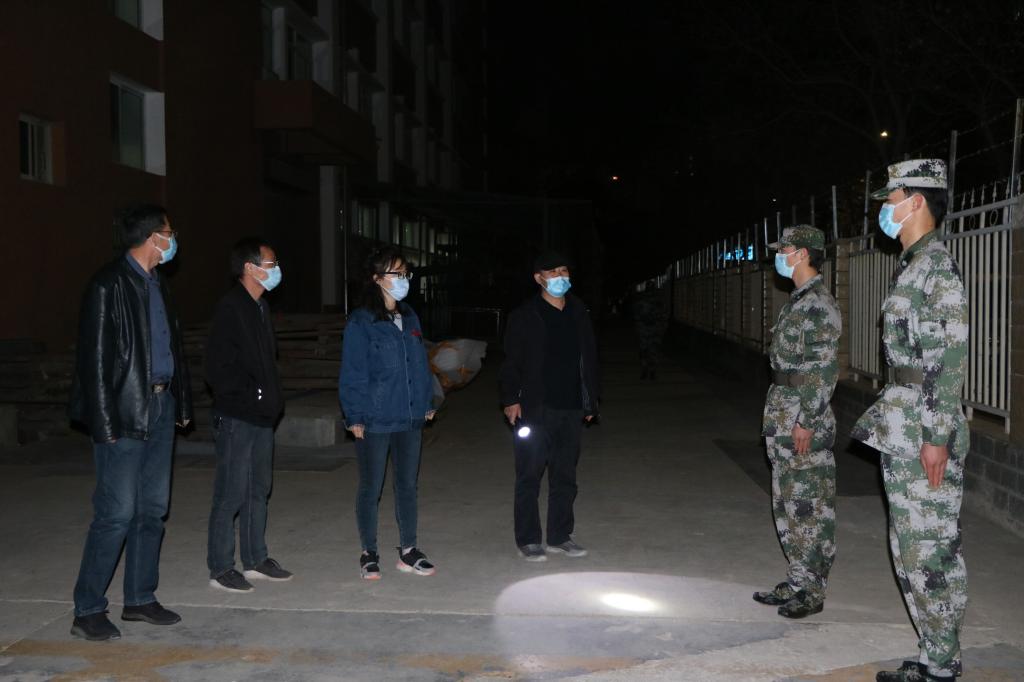 来到一线重点区域,学院领导巡检现场巡逻值班工作,并对预备役同学按要求落实值班安排和防控工作表示了充分的肯定。随即对晚上默默坚守岗位的预备役同学不辞辛苦、服务师生的奉献精神表示称赞。最后,学院领导强调:预备役同学们要高度重视疫情防控工作,强化值守,做到人不离岗、岗不离人,巡逻务必细致,谨防出现晚上有部分学生“钻空子”,出现取外卖、取快递、翻墙出校等违纪现象。