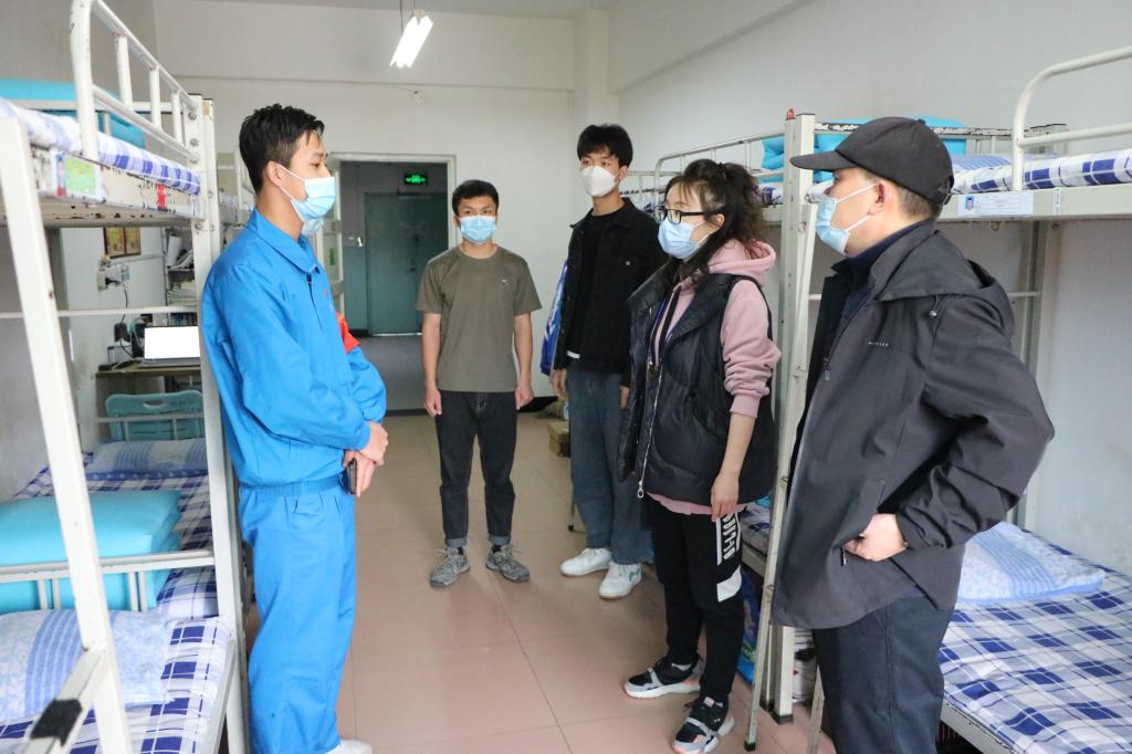 每走进一间宿舍,学院领导就首先询问是否有宿舍成员健康码转黄,并亲自查看了学生的健康码。随后,学院领导与健康码变黄的学生进行了亲切交谈。学院领导指出:自兰州本轮疫情爆发以来,学校第一时间启动应急响应,实行封闭式管理、开展线上教学、暂停食堂、并组织全员两天进行一次核酸检测等疫情防控措施,全力维护同学们的身体健康和生命安全。近期核酸检测结果显示,校内全体留校师生员工均为阴性,充分说明当前校园是安全的。希望同学们能够正确对待健康码转黄的事情,如果有异常者,及时上报给班主任及辅导员。同时同学们也要保持平稳的心态、上好网课、加强锻炼,保证劳逸结合,安心等待核酸检测。若生活、学习中若有困难及时与辅导员沟通,积极配合学校的疫情防控工作,做好个人防护,要经常与父母联系,让家长放心。
