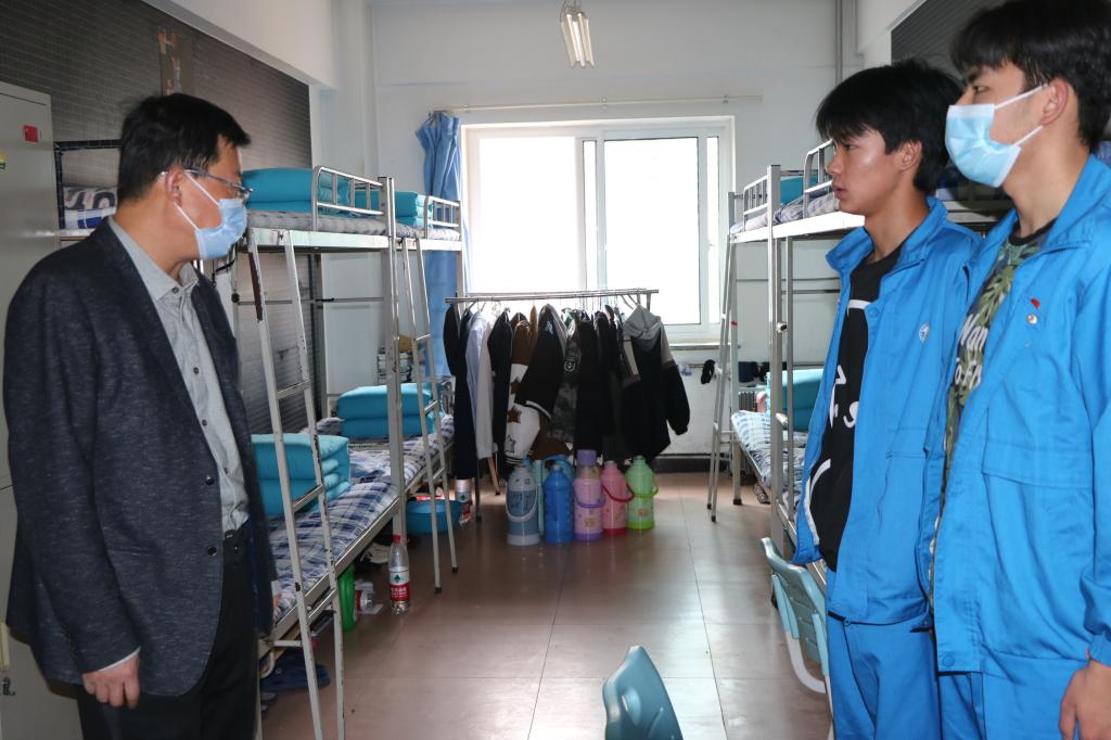 每走进一间宿舍,学院领导就首先询问是否有宿舍成员健康码转黄,并亲自查看了学生的健康码。随后,学院领导与健康码变黄的学生进行了亲切交谈。学院领导指出:自兰州本轮疫情爆发以来,学校第一时间启动应急响应,实行封闭式管理、开展线上教学、暂停食堂、并组织全员两天进行一次核酸检测等疫情防控措施,全力维护同学们的身体健康和生命安全。近期核酸检测结果显示,校内全体留校师生员工均为阴性,充分说明当前校园是安全的。希望同学们能够正确对待健康码转黄的事情,如果有异常者,及时上报给班主任及辅导员。同时同学们也要保持平稳的心态、上好网课、加强锻炼,保证劳逸结合,安心等待核酸检测。若生活、学习中若有困难及时与辅导员沟通,积极配合学校的疫情防控工作,做好个人防护,要经常与父母联系,让家长放心。