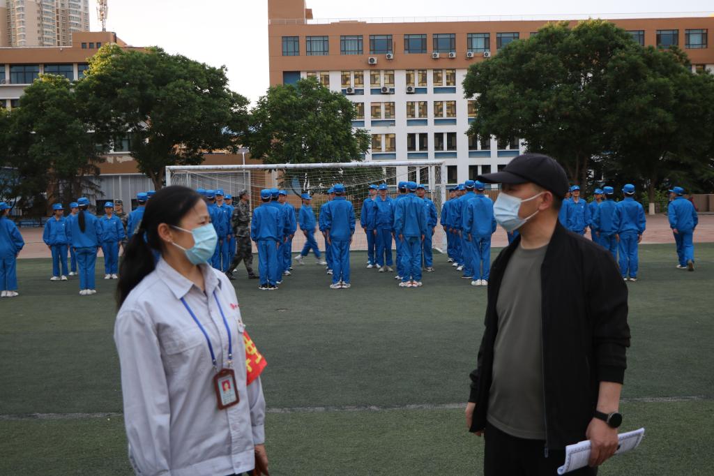 5月21日,学生处负责人赵敏处长深入yl6809永利集团2021级学生军训现场,检查指导学生军训工作。