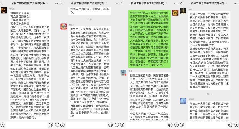 观看结束后,学院第一时间组织师生通过多种形式开展学习讨论。通过交流研讨,全院师生更加深刻地认识和把握了大会报告的精神实质和丰富内涵,第一时间把思想和行动统一到党的二十大精神上来,全院上下迅速掀起了学习宣传贯彻党的二十大精神的热潮。