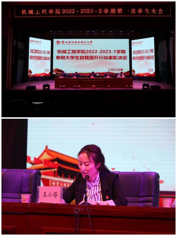 会议伊始,学院学生工作负责人就2022-2023学年第一学期寒假大学生自我提升计划活动进行了总结表彰,并希望受到表彰的同学们珍惜荣誉、再接再厉,为学院学生树立榜样,从而做有诚信、有责任、有理想、有担当的大学生。同时,大会对刚刚结束的“团结杯”篮球赛进行了总结表彰,该项活动负责人郭建军老师在讲话中表示,通过此次比赛,增强了学院学生的凝聚力和战斗力,培养了学生的集体荣誉感,从而增进了同学们的友谊,展现了各班级团结、和谐、勇于拼搏的精神风貌。大会为受到表彰的集体和个人进行了颁奖,希望同学们始终保持不骄不躁的求学态度,实学实干、奋发图强,在砥砺奋进中继续书写人生华章;同时也希望暂时未受到表彰的同学,以先进为榜样,奋发图强、奋起直追,争取更好的成绩,加入到先进的行列。