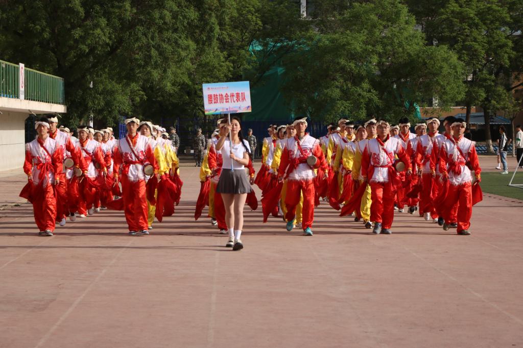 腰鼓方阵、擒敌拳方阵、啦啦操方阵为开幕式献上精彩的表演