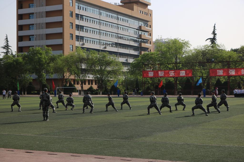 腰鼓方阵、擒敌拳方阵、啦啦操方阵为开幕式献上精彩的表演
