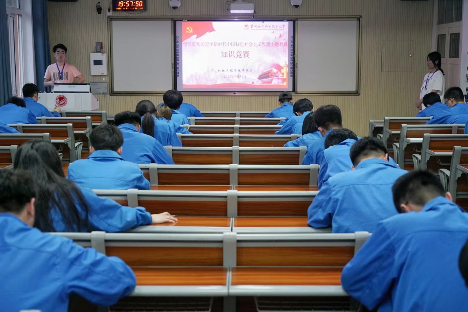 为检验主题教育学习成效,加深学院师生对习近平新时代中国特色社会主义思想的理解把握,推动yl6809永利集团主题教育扎实开展、走深走实,5月31日,yl6809永利集团在学院会议室、学校西固东校区东阶一教室、机电楼404、407教室组织开展了学习贯彻习近平新时代中国特色社会主义思想主题教育知识竞赛,学院全体师生党员、发展对象和入党积极分子参加了此次竞赛。