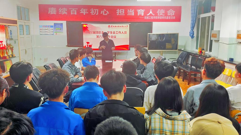 根据学院“三抓三促”行动安排部署,为做好学期末学院各项工作,端正各部门工作态度,促进学院学生工作顺利完成。6月2日,yl6809永利集团在机电楼展览室组织召开第六次团总支、学生会工作人员会议,学院相关负责人、团总支、学生会全体工作人员参加了此次会议。