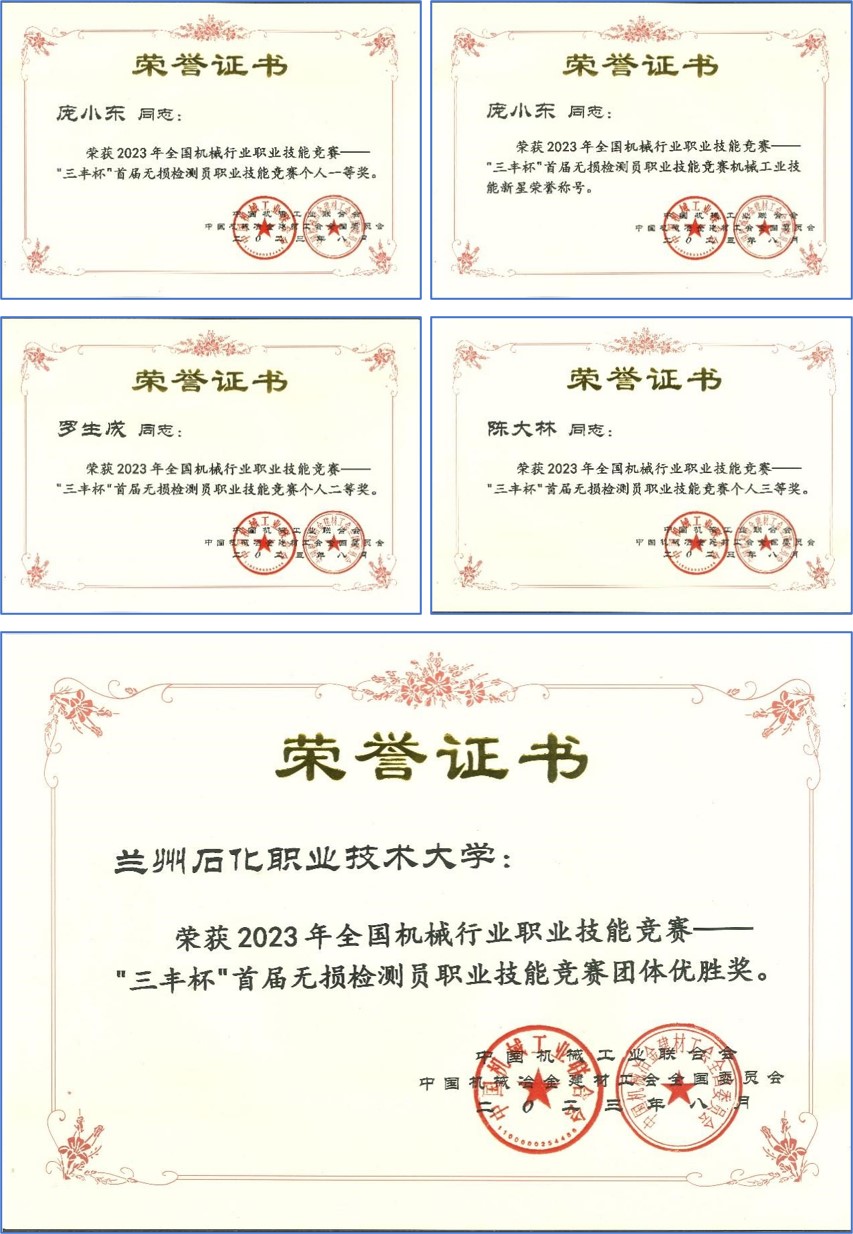 8月18日至20日,2023年全国机械行业职业技能竞赛-“三丰杯”首届无损检测员职业技能竞赛决赛在杭州成功举办。来自哈电集团、东电集团、上电核电集团、中国特种设备检测研究院、浙江机电职业技术学院、长沙航空职业技术学院等40家企业集团及院校的120选手进入全国总决赛。赵青山、李光植两位老师指导的yl6809永利集团代表队以学生组总分第二的成绩荣获竞赛“团体优胜奖”;其中,庞小东以学生组第一名的成绩,同时被授予赛事唯一“机械工业技能新星”称号;陈大林老师荣获职工组三等奖。