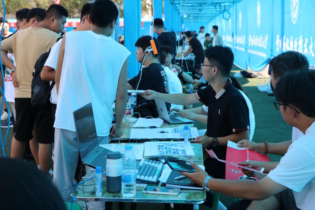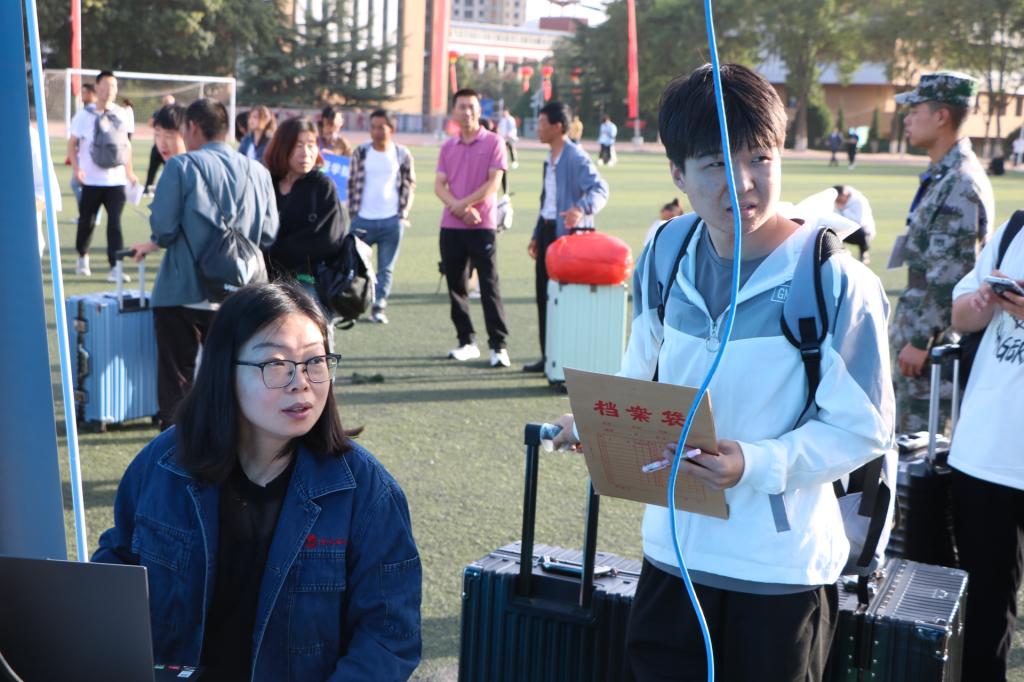 旭日初升,很快迎来了第一批入学报到的学院新生,从电子注册、资格审查,到档案收取、物品发放,志愿者们始终热情洋溢、认真负责,确认每一位新生的入学信息无误,保障每一位新生顺利完成入学报到。
