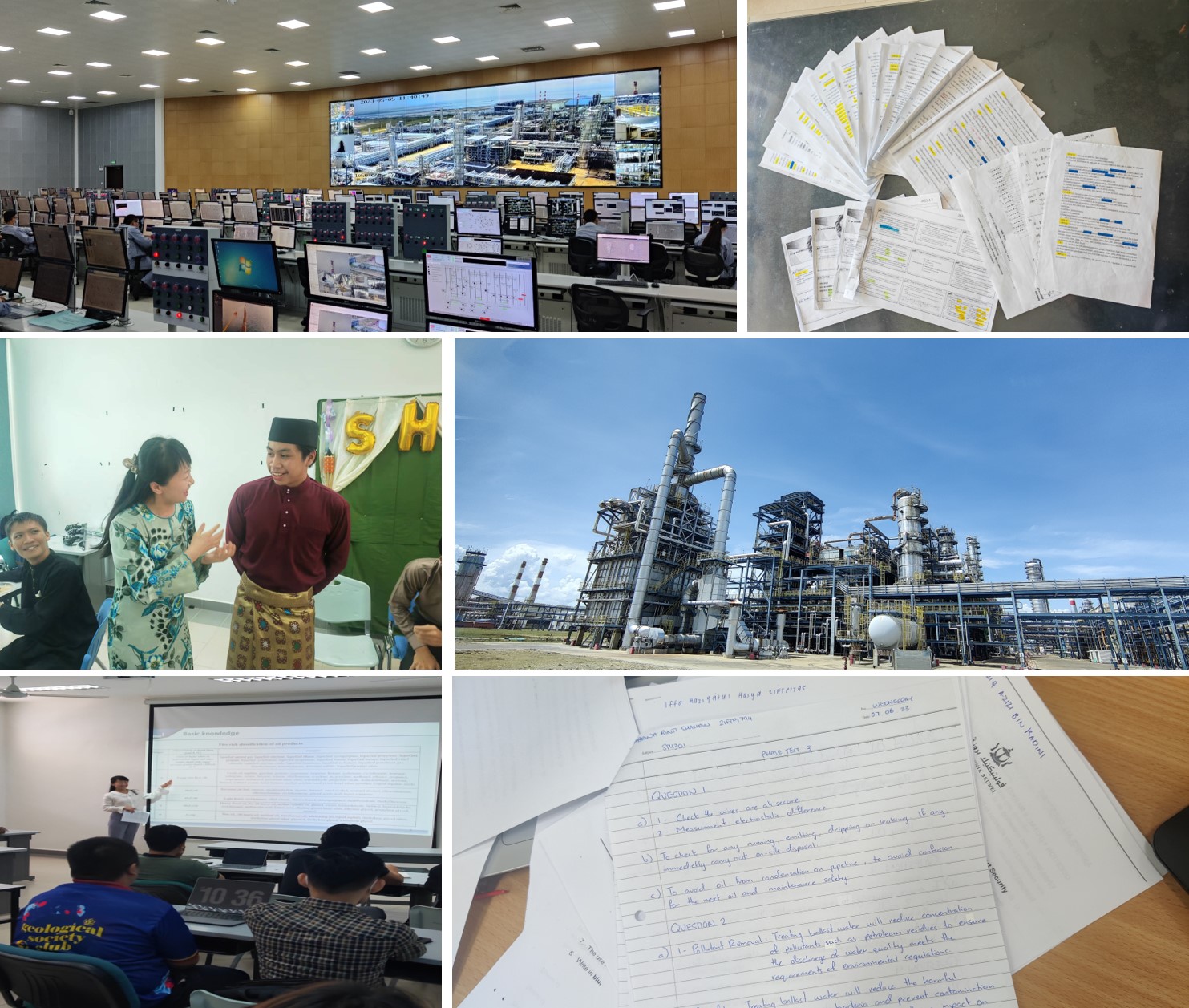 海外工厂工艺技术更新迭代速度较快,执行标准与国内略有不同,为了能使培养的学生更快地适应恒逸石化综合炼化项目工作岗位要求,海外教学团队成员深入恒逸实业(文莱)有限公司一线开展调研活动,通过现场参观,一线交流等多种形式,充分了解企业运行管理模式和个性化的岗位需求,并针对企业部分特有的新工艺、新方法查阅和翻译大量国外文献资料和技术标准,在教学过程中融入大量国外先进技术案例和国际标准规范来适应当地学生不同的学情和需求。同时为了加强各专业学科交流,不断提高不同专业教师的教学能力,储运、化机、热动专业教师在驻地利用课余时间自发组织多次跨专业集体备课活动,通过信息互通,专业互补,在兢兢业业的工作态度中,修改完善课程内容,整理形成了10余本富有当地企业特色的教学讲义,制作教学视频、三维模型数十件。