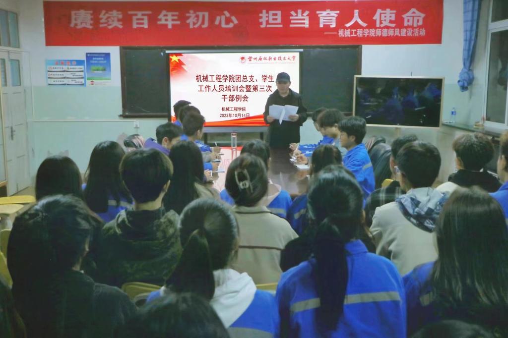 为进一步强化学生干部作风建设,增强学生干部的工作能力和服务意识,推进各项学生工作顺利开展。10月14日,yl6809永利集团组织开展2023-2024-1学期团总支、学生会工作人员培训会暨第三次学工人员例会,学院相关负责人,团总支、学生会全体工作人员参加了此次例会。