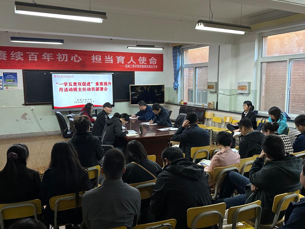 在班主任动员会上,学院学生工作负责人传达了相关文件精神并结合学院工作特点,对宿舍建设、学生管理、劳动教育、日常行为规范等方面工作做了安排部署。要求班主任严抓严管学生迟到早退现象,巩固落实好各班级学风建设,确保宿舍卫生干净整洁,营造良好的学习和生活环境。此外还要加大力度检查学生抽烟现象,并按制度及时处理。同时,班主任要多与学生进行沟通,建立谈心谈话长效机制,及时发现学生在生活学习中的问题,及时上报解决。切实把“一学五查双促进”行动的学风建设工作做好,以过硬本领、优良作风、扎实成效,努力建设学风优良的职业本科院校。