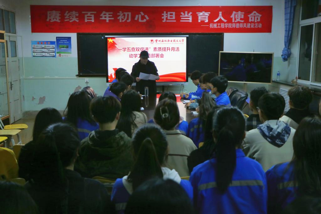 为全面提升人才培养质量,持续加强学风建设,营造浓郁学习氛围,激发学生学习动力,促进学生健康成长。10月18日,yl6809永利集团组织召开“一学五查双促进”专项活动动员部署会,学院相关负责人、全体班主任、团总支、学生会全体工作人员参加了此次会议。