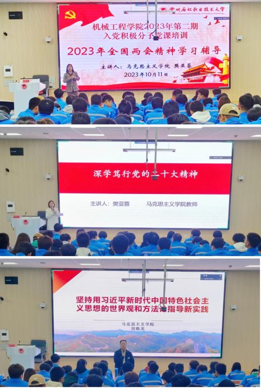 本期培训为期14天,学院负责人魏延宏、王小芬、张胜男,党支部书记及支部委员贺振泓、马元俊、杨琛等分别为培训班授课。此外,本期培训班还特邀了马克思主义学院樊亚蓉老师和刘晓龙老师为学员们进行了2023年全国“两会”精神、党的二十大精神和习近平新时代中国特色社会主义思想的专题党课培训和辅导。