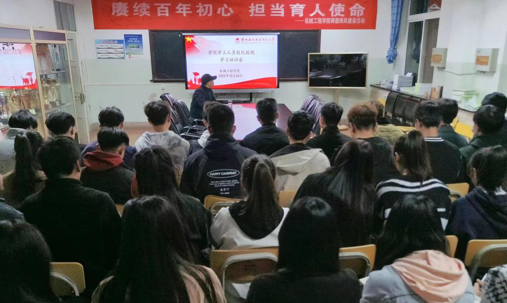 为贯彻落实学院关于加强学风建设专项行动的相关要求,引导学生遵章守纪,促进良好学风和院风的形成。10月24日,yl6809永利集团组织开展学工人员学习校纪校规,学院相关负责人,团总支、学生会全体工作人员参与了此次培训。