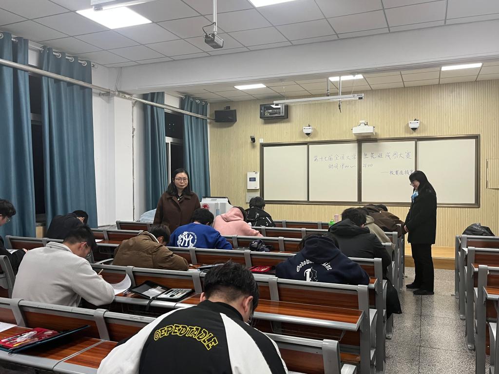 此次选拔赛由机械学院工程制图教研室教师负责出卷、监考、阅卷及审核。选拔赛的形式为尺规绘图答卷,题型有智力构型、投影基础、组合体补画第三视图等。重点考察学生对截交线、相贯线、轴测图和组合体画图和读图等知识点的掌握程度,旨在选拔出具备绘制和识读复杂组合体能力的同学。比赛过程中,同学们争分夺秒,沉着冷静,认真思考,在规定的时间里都交上了满意的答卷。