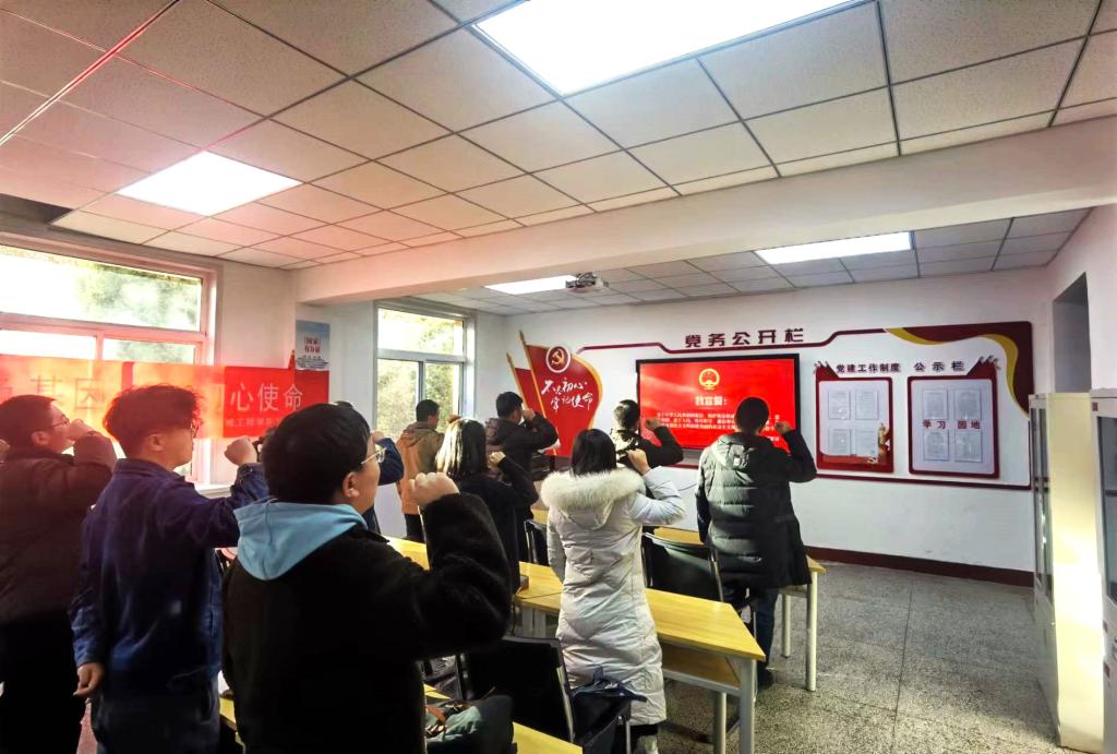 在学院党员之家,全体党员肃穆站立,举起右拳,用整齐而洪亮的声音庄严宣誓:“我宣誓,忠于中华人民共和国宪法,维护宪法权威,履行法定职责,忠于祖国、忠于人民,恪尽职守、廉洁奉公,接受人民监督,为建设富强民主文明和谐美丽的社会主义现代化强国努力奋斗!”一声声铿锵有力的誓言充分体现了支部全体党员履行宪法使命的坚定决心。