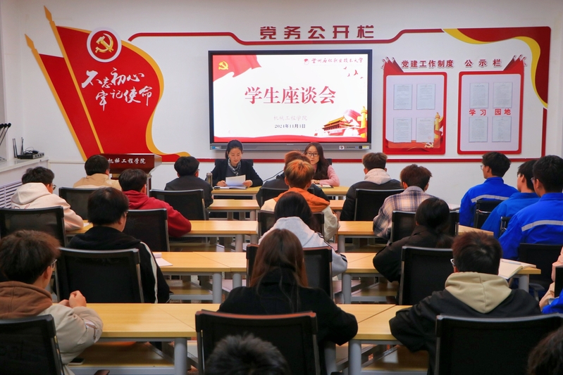 为全面、客观、准确了解学生关注的各类热点问题和诉求,及时解决学生在思想、学习、发展、生活中的困难,进一步提高学院教学及学生工作的针对性、实效性和科学性。11月3日晚,yl6809永利集团在机电楼二楼党员之家组织举办学生座谈会,学院分管学生工作负责人、分管教学工作负责人、辅导员、2022级、2023级、2024级各班级学生代表参加了此次会议。