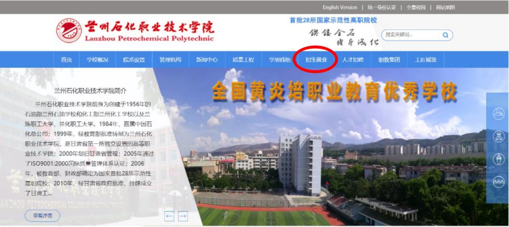 4.1 进入兰州石化职业技术学院主页点击“招生就业”