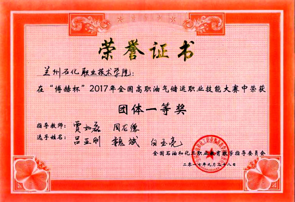 2017年全国高职油气储运职业技能大赛-团体一等奖