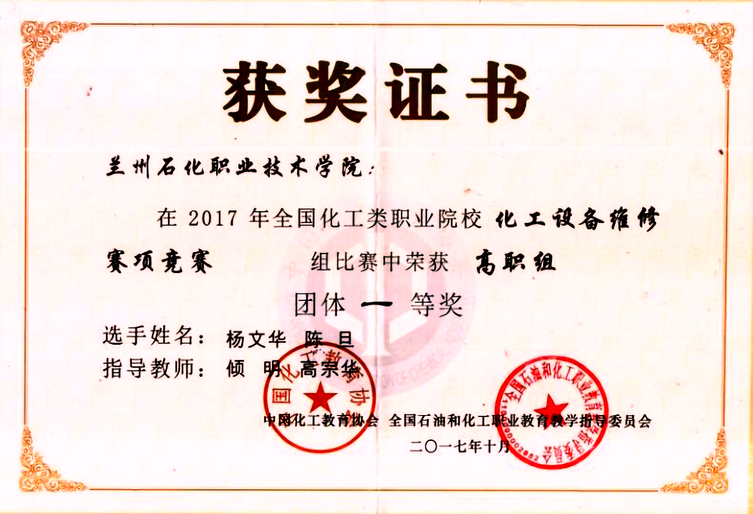 2017年全国化工类职业院校化工设备维修赛项竞赛-团体一等奖